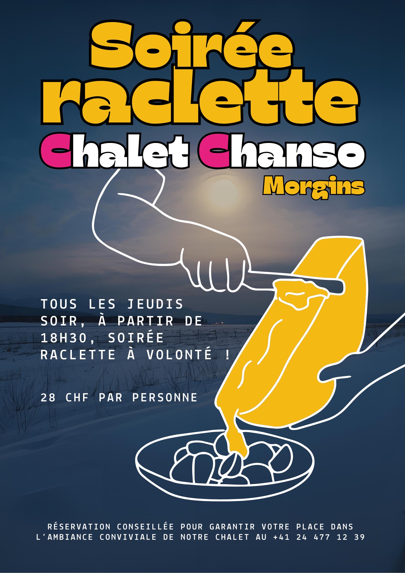 - Evenings by reservation only. Every Thursday evening, from 6:30 pm, all-you-can-eat raclette (reservations recommended).