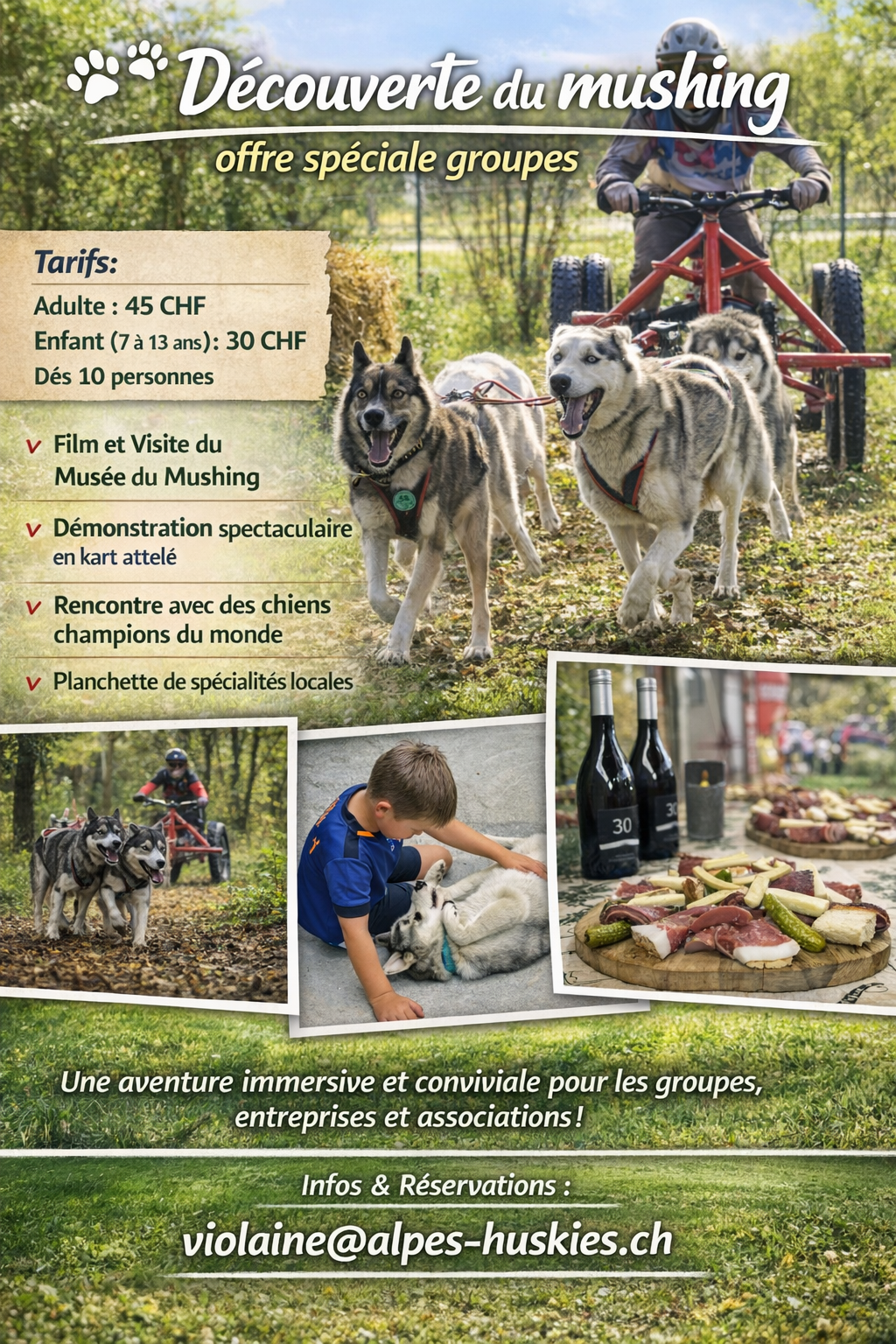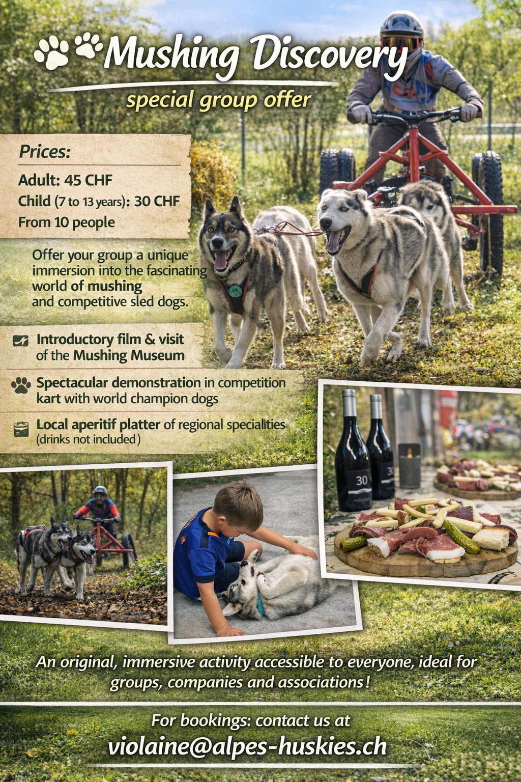Treat your group to a unique immersion in the exciting world of mushing and competitive sled dogs!