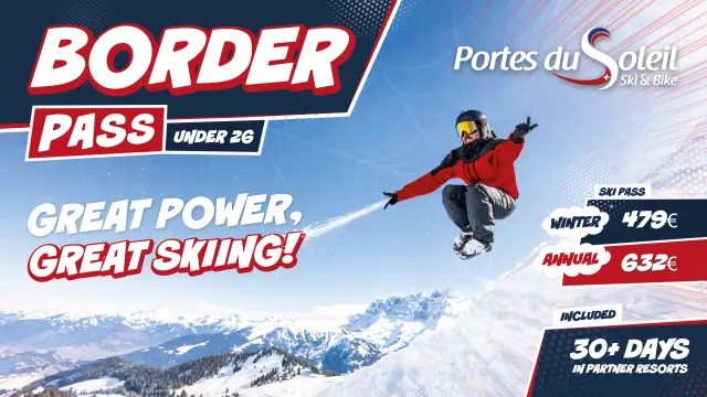 For young people under the age of 26 (born on or after 01/01/2001), the Portes du Soleil winter season ski pass at :